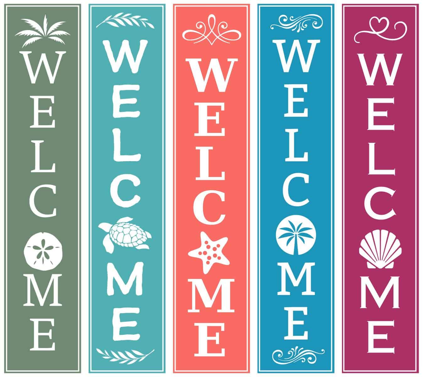 Customize the “O” in WELCOME: Choose from a starfish, sand dollar, anchor, or other nautical icons to give your sign a fun, beachy twist.