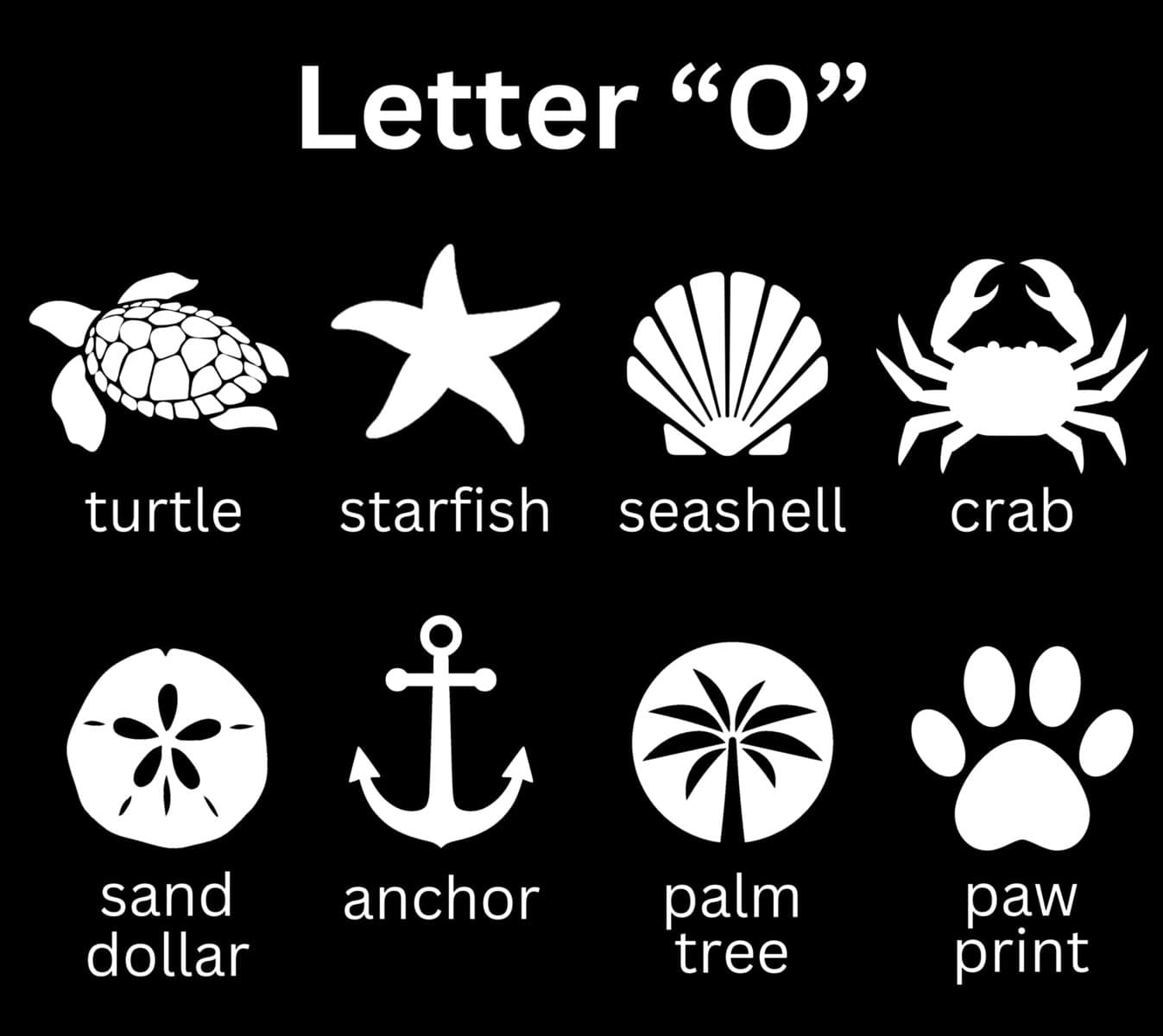 | Letter "O" Icon | Anchor, Crab, Paw Print, Palm Tree, Sand Dollar, Seashell, Starfish, Turtle, Other (Please Specify) |