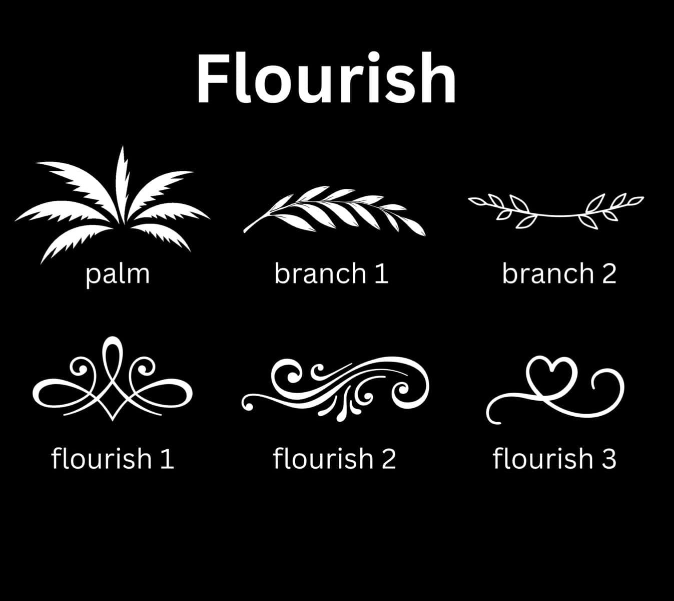 | Flourish | palm, branch 1, branch 2, flourish 1, flourish 2, flourish 3, none |