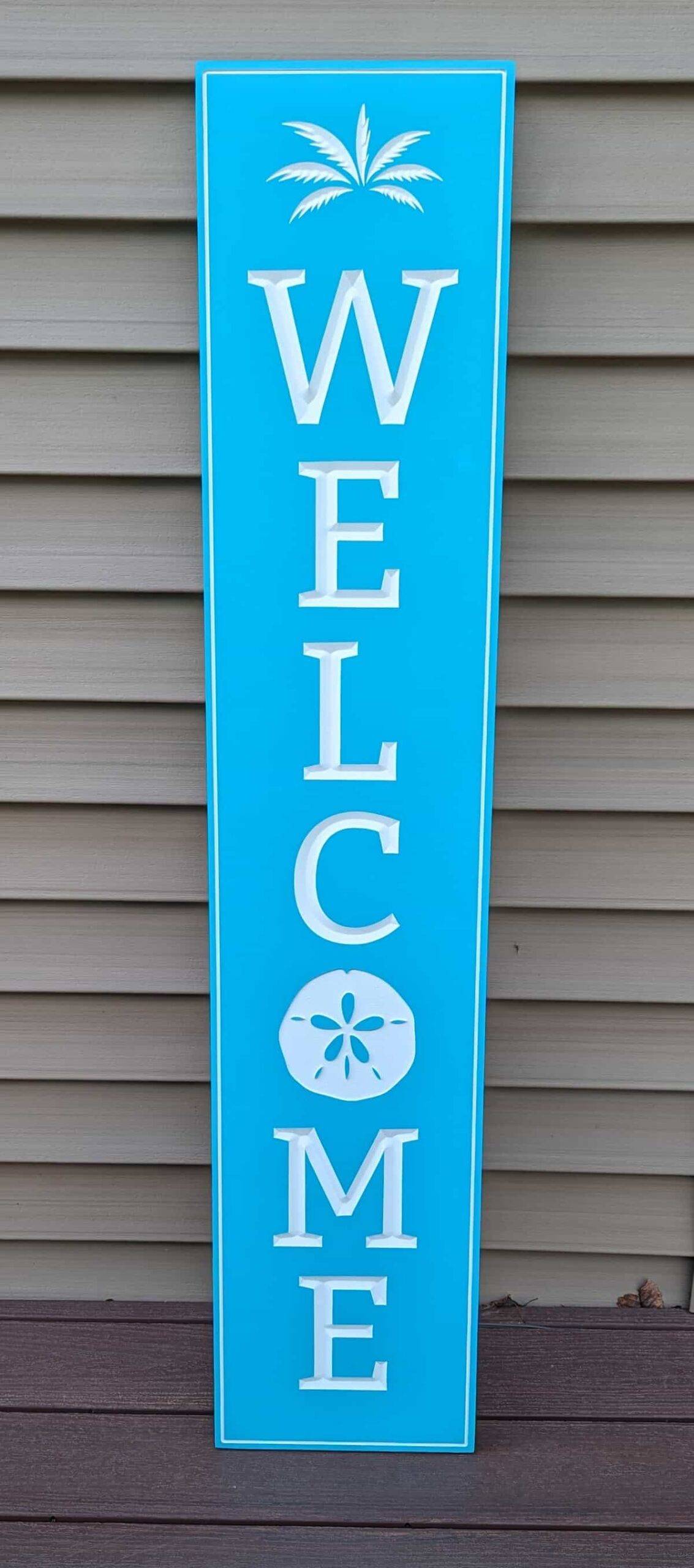 Unlike vinyl decals or printed designs, this vertical welcome sign features deeply engraved lettering and hand-painted details for a premium finish that lasts. Whether you’re decorating your front porch, entryway, or patio, this personalized coastal sign adds a warm and welcoming nautical touch to your outdoor space.