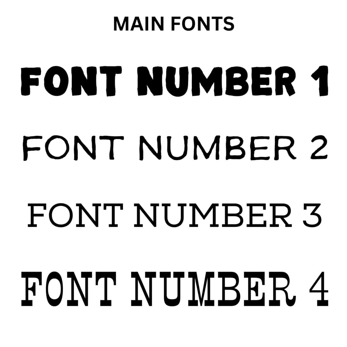 | Font | Font 1, Font 2, Font 3, Font 4 |